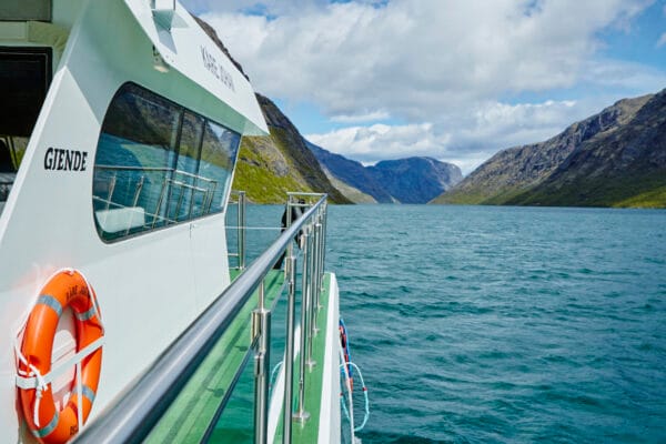 Der Gjendesee liegt 984 Meter über dem Meeresspiegel und ist auf allen Seite von 2000 Meter hohen Gipfeln umgeben. Vom Parkplatz bei der Hütte Gjendesheim dauert die Überfahrt mit dem Schiff nur knapp eine Stunde: schon liegt Ihnen der Nationalpark Jotunheimen mit unzähligen wunderschönen Tourmöglichkeiten zu Füßen. Für alle, die wissen möchten, wie das Wetter auf dem Gjendesee gerade ist, haben wir unsere Web-Kamera. Sie liefert Ihnen ein aktuelles Bild von Gjendeosen. PS: Häufig ist das Wetter besser als yr.no meldet :-). Herzlich willkommen und eine schöne Tour!